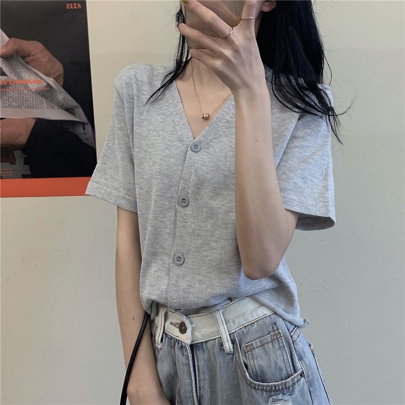 5分鐘前氣質v領薄款打底針織衫,2020夏季新款女裝短款開衫上衣 - 【買一送二】任選3件,僅需NT$1098