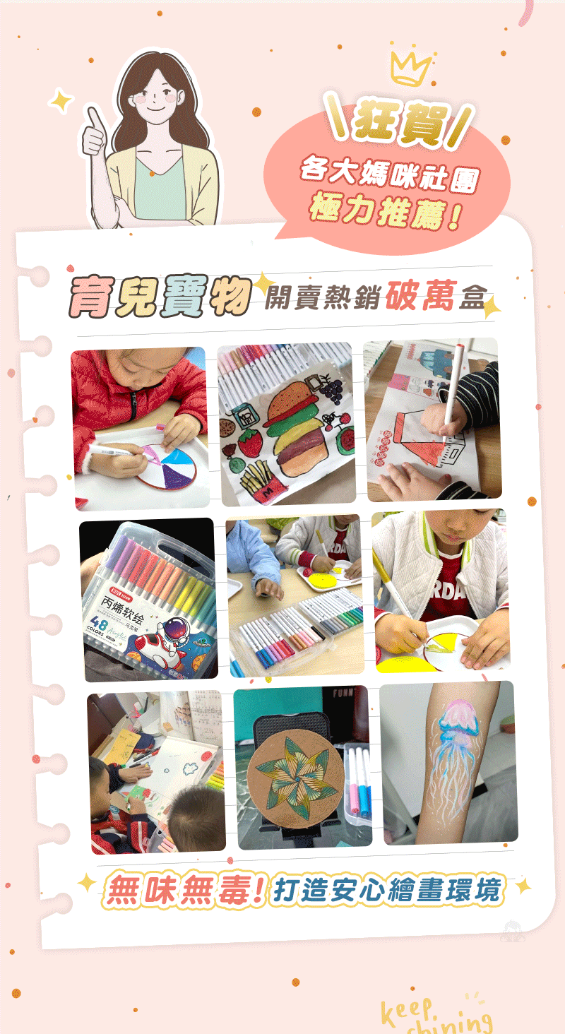 2分鐘前丙烯彩繪馬克筆 超強覆蓋力,萬物材質皆可畫,專為兒童研發,輕鬆擦拭不卡色 - 【一套】丙烯彩繪馬克筆 (48色)NT$580