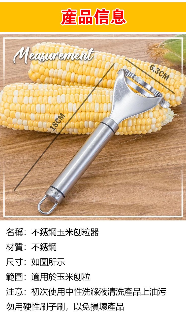 2分鐘前火爆熱賣 不銹鋼玉米刨粒器 鋒利鋸齒,剝落乾淨,絕不浪費 剝玉米,胡蘿蔔皮 土豆皮,304不鏽鋼材質,易於清洗 - 【狂殺特賣】9入組-NT$1380