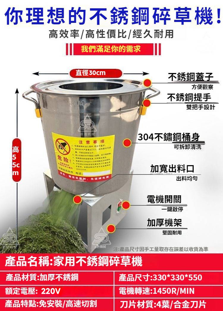 25分鐘前【養殖好幫手】多功能碎菜機,碎菜只需1秒,廠家直銷,貨到付款 量大優惠! - 800W不鏽鋼台式碎菜機--NT$3590