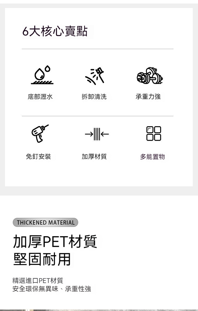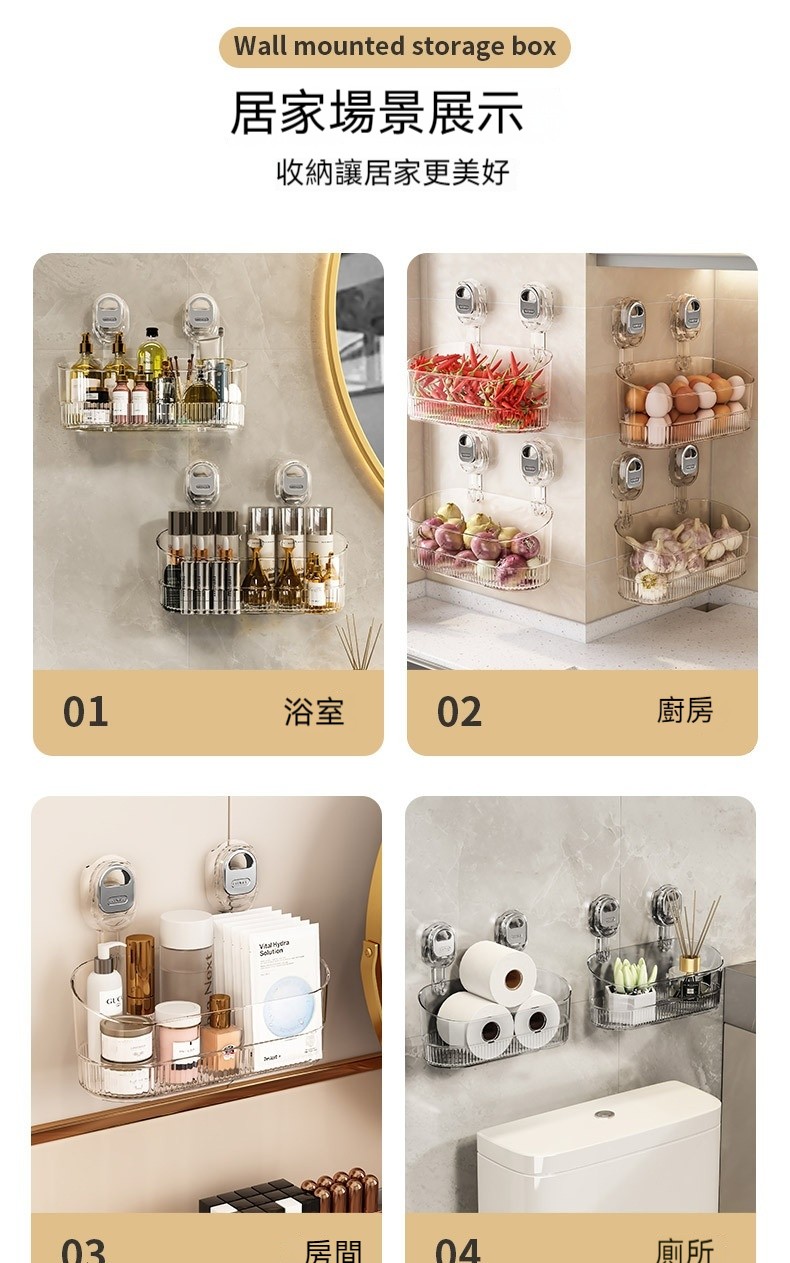 20分鐘前【免打孔吸盤置物架】免鑽孔不傷牆!隨心換位不留痕!乾淨整潔收納無拘束! - 【虧本特價】四入組 - NT$1280(均價320/入)